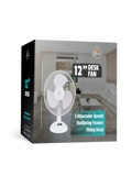 3 Speed 12" Oscillating Desk fan - Available in White or Black colour