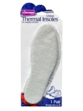 1 Pair of thermal footwear insoles. Natural latex rubber backing with fleece upper. Fits both ladies and men's footwear sizes 3(35.5) -11(46).